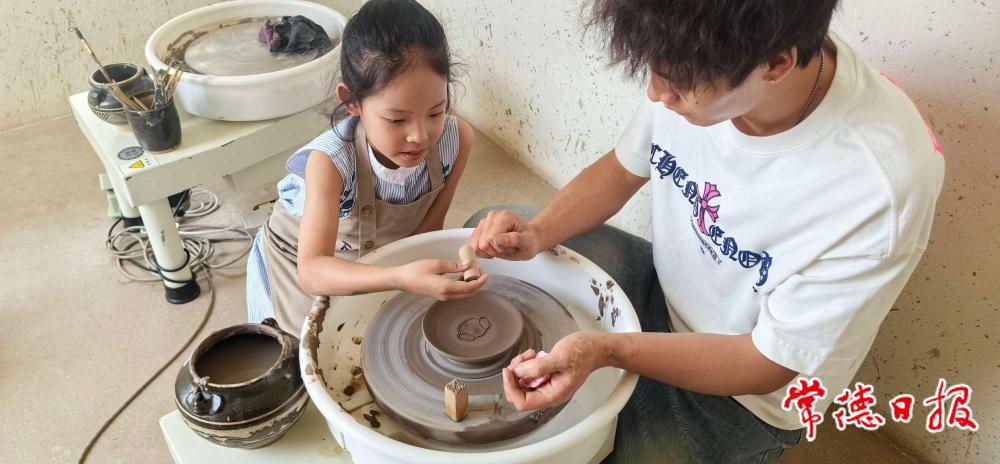 路上,有三兩吊帶加熱褲、皮靴的美女,在做大片主角。繞行,拐入一側(cè)小道,一家“下河沿陶社”吸引了兩只跟屁蟲。“做陶器,常德不是有體驗(yàn)店嗎?”我想省錢。“媽媽,難得出來一次嗎,拜托拜托……”妹妹合著小手,撅著小嘴,露出哀求又無辜的表情。于是,在店員的指導(dǎo)下,兩姐妹各自捏塑完成陶碗、陶盤。等陰干、素?zé)⑸嫌浴⒂詿墓ば蛲瓿珊螅陠T再將陶器寄到常德。