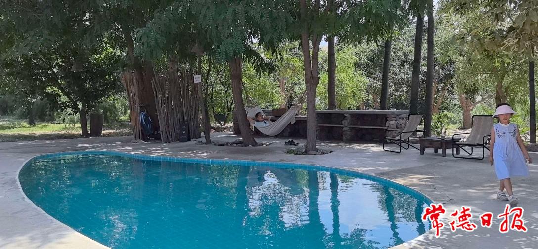 一向看到酒就頭暈的先生,不知怎的來了興致,拿出冰箱里的兩罐啤酒獨(dú)酌起來。看來更年期的男人,偶爾會(huì)有反常之舉。飽餐后,姐妹倆翻出行李箱里備好的小泳衣、小泳帽,像兩只快樂的土撥鼠,奔向院子里的露天泳池。結(jié)果,因泳池抽的是地下水,偏低的水溫讓她們不敢逗留太久。