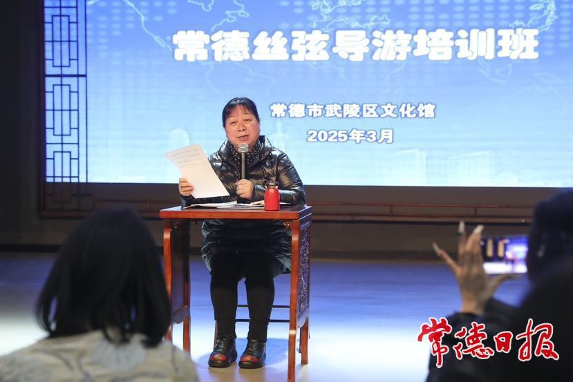 常德日報記者 裴維維 通訊員 汪洋 文/圖 3月5日,常德絲弦導游培訓班在武陵區文化館正式開班。來自我市部分旅行社專職導游、一線文旅從業人員、旅游教學人員以及市導游員協會會員等相關行業從業人員共22人齊聚一堂,在常德絲弦國家級非遺代表性傳承人諶曉輝的指導下,學習常德絲弦理論知識及基本唱法,提升業務技能,助力其在激烈的旅游市場競爭中脫穎而出,講好常德故事,樹好常德形象,為常德文旅產業高質量發展注入新動能。