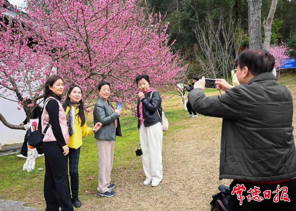 在桃花源,多株桃樹率先爭春,粉紅色的花蕾給景區(qū)帶來一抹亮色。桃林中,人面桃花相映紅,眾多女性游客紛紛拍照留念,記錄下這美好的瞬間。