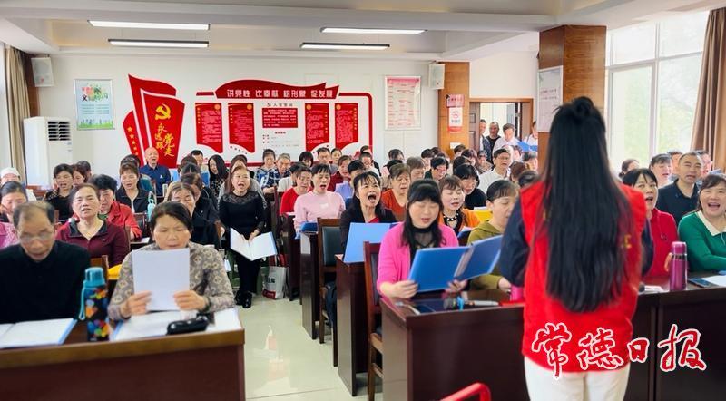 “沅水號子喊大的地方,洞庭魚米養胖的地方……”3月26日,在武陵區南坪街道辦事處活動中心,一堂合唱課正在火熱進行。現場座無虛席,120余名老年人精神飽滿,沉浸其中。他們跟著專業老師吟唱常德絲弦,臉上洋溢著陶醉與喜悅。