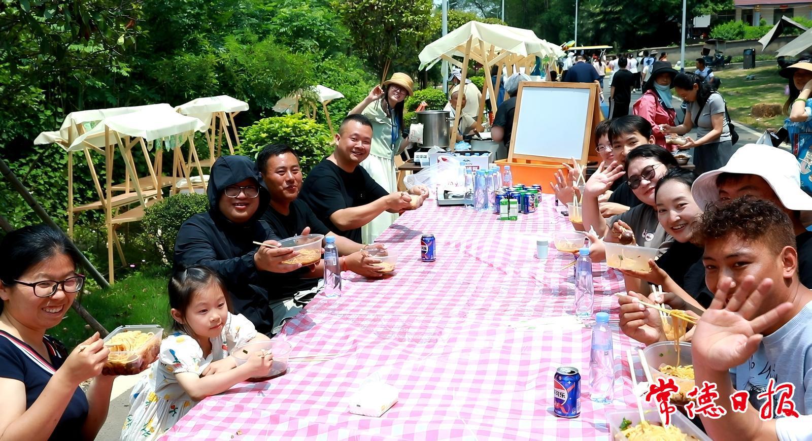 自假期首日起,港中坪片區便以“農文旅融合”為主題掀起熱潮。5月1日竹林尋寶、射箭投壺的趣味尚未消散,次日“天空夢想日”便點燃親子熱情——數十架“輕騎士”航模在稻田上空劃出優美弧線,孩童追逐的身影與螺旋槳的蜂鳴聲定格成藍天下的活力畫面;長桌嗦粉宴上,游客圍坐品味牛肉粉的濃香,和酸豆角、酸包菜的爽脆,歡聲笑語不斷;稻田親子活動中,“渾水摸魚”的泥塘里“小泥人”們高舉戰利品,荷塘抓鴨區水花四濺,童趣與野趣碰撞出最純粹的笑聲。“每個項目都讓孩子玩到不想走!”長沙游客周女士感慨道。