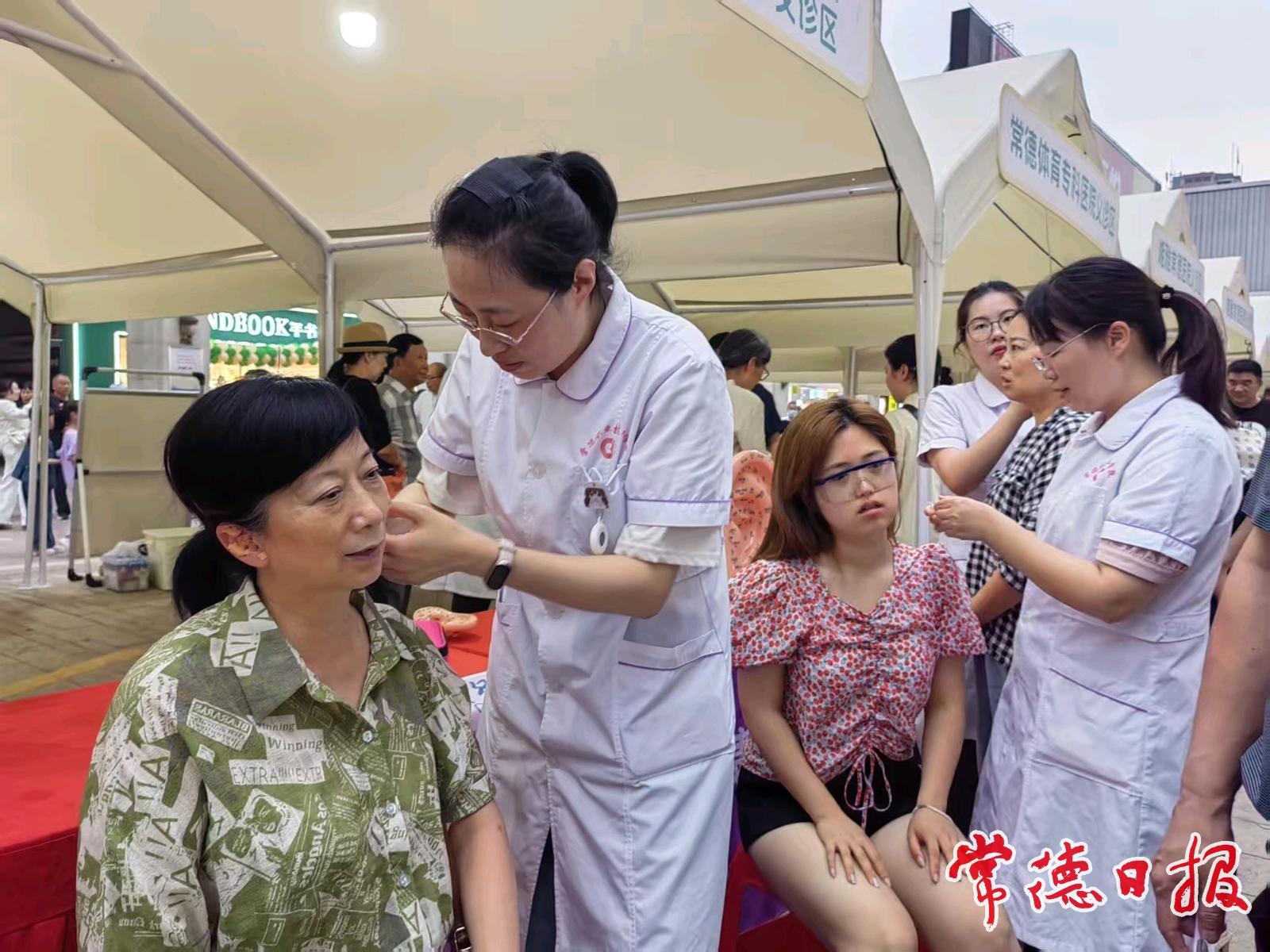 開幕式的養生操展示環節成為一大看點。醫護人員化身“健身教練”,現場表演“燃脂健身操”和“八段錦”,快慢有序、剛柔并濟。不少市民尤其是小朋友,興致勃勃地跟著學習,稚嫩的動作透著對傳統養生文化的好奇與喜愛。在手工制作艾草按摩錘互動區,工作人員詳細介紹制作流程與功效,完成的按摩錘贈予就診患者和參與養生操學習的群眾,讓大家把健康“帶回家”。