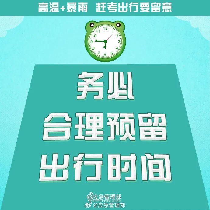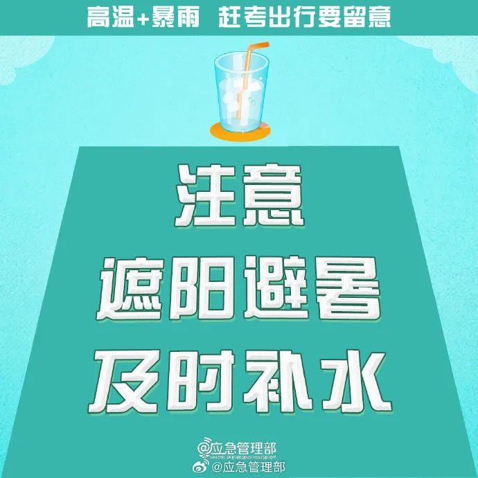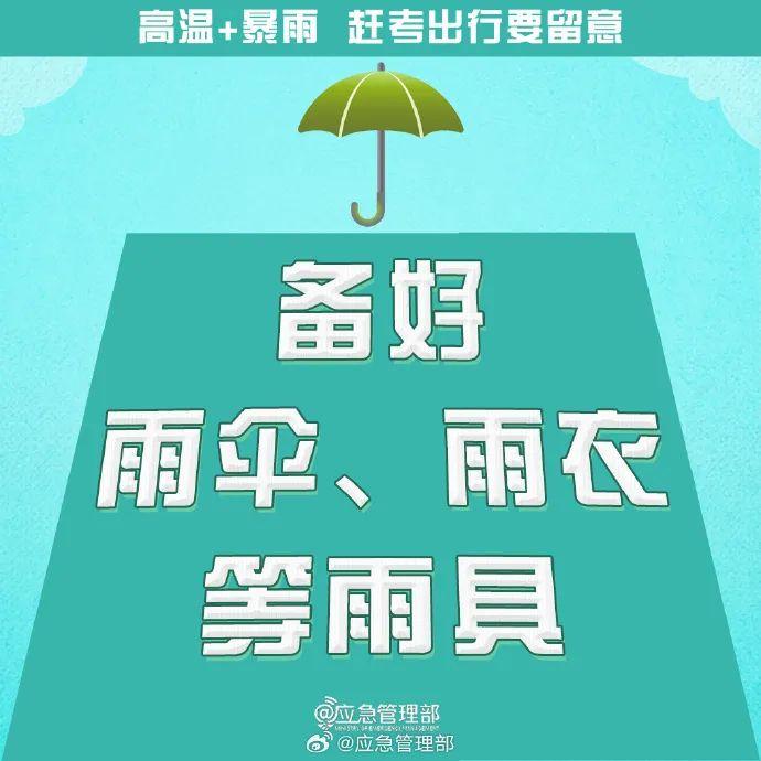 7日白天(高考),湘中以北小到中等陣雨或雷陣雨,常德、益陽北部、岳陽局地大雨,其他地區晴天到多云;最高氣溫34-36℃。