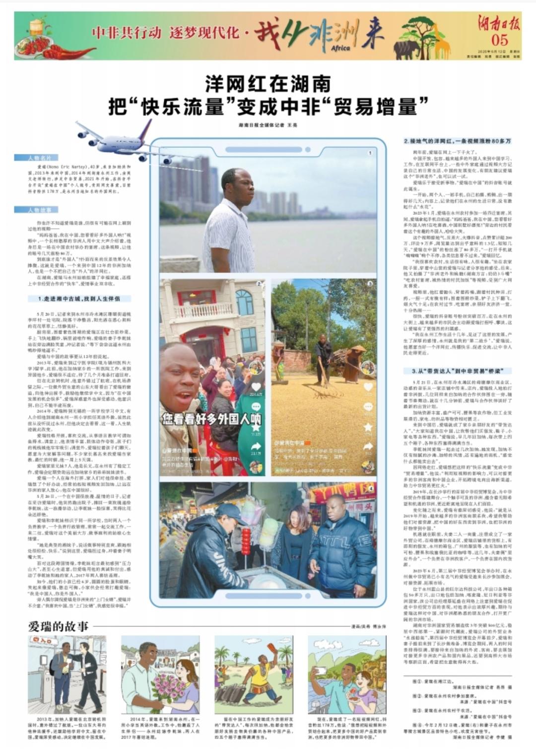 在湖南,愛瑞與永州姑娘組建了幸福家庭,還搭上中非經貿合作的“快車”,愛情事業雙豐收。