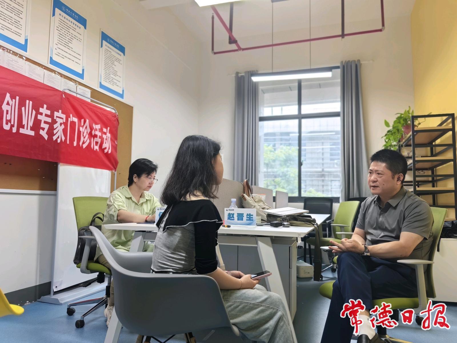常德日報記者 姚懿容 通訊員 向婷婷 文/圖 6月21日,常德市大學生創業就業服務驛站“創業專家門診”活動在湖南文理學院舉行。來自常德市趙晉生創業指導工作室的兩名創業專家為5個大學生創業項目“把脈問診”,項目內容涉及電商、AI應用、農業機械、智能井蓋等領域。