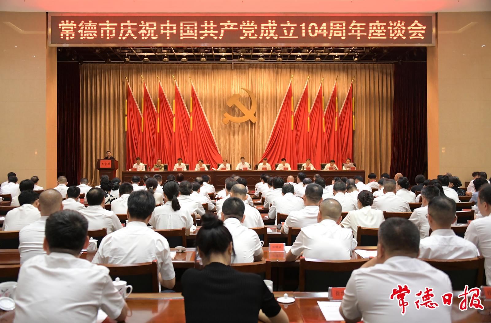 常德日報記者 王自來/文 陳歡/圖 7月1日,常德市慶祝中國共產黨成立104周年座談會召開。市委書記羅毅君結合深入貫徹中央八項規定精神學習教育講授專題黨課。市委副書記、市長周振宇主持會議。中央第三指導組有關同志出席。