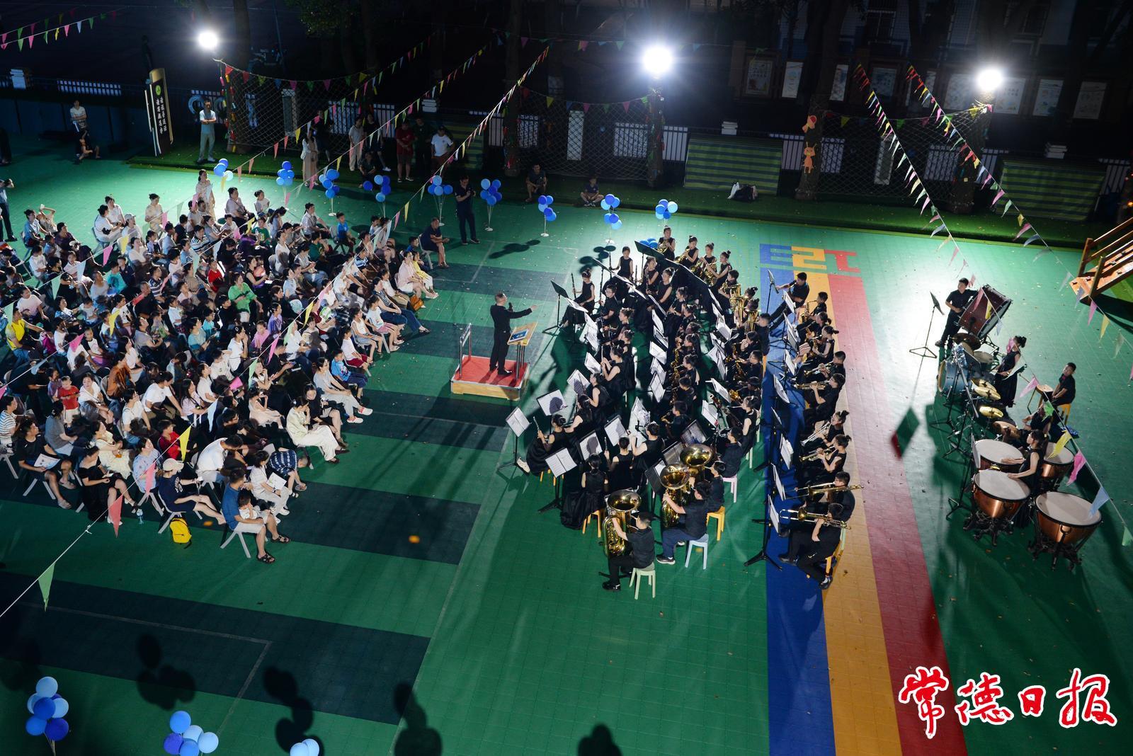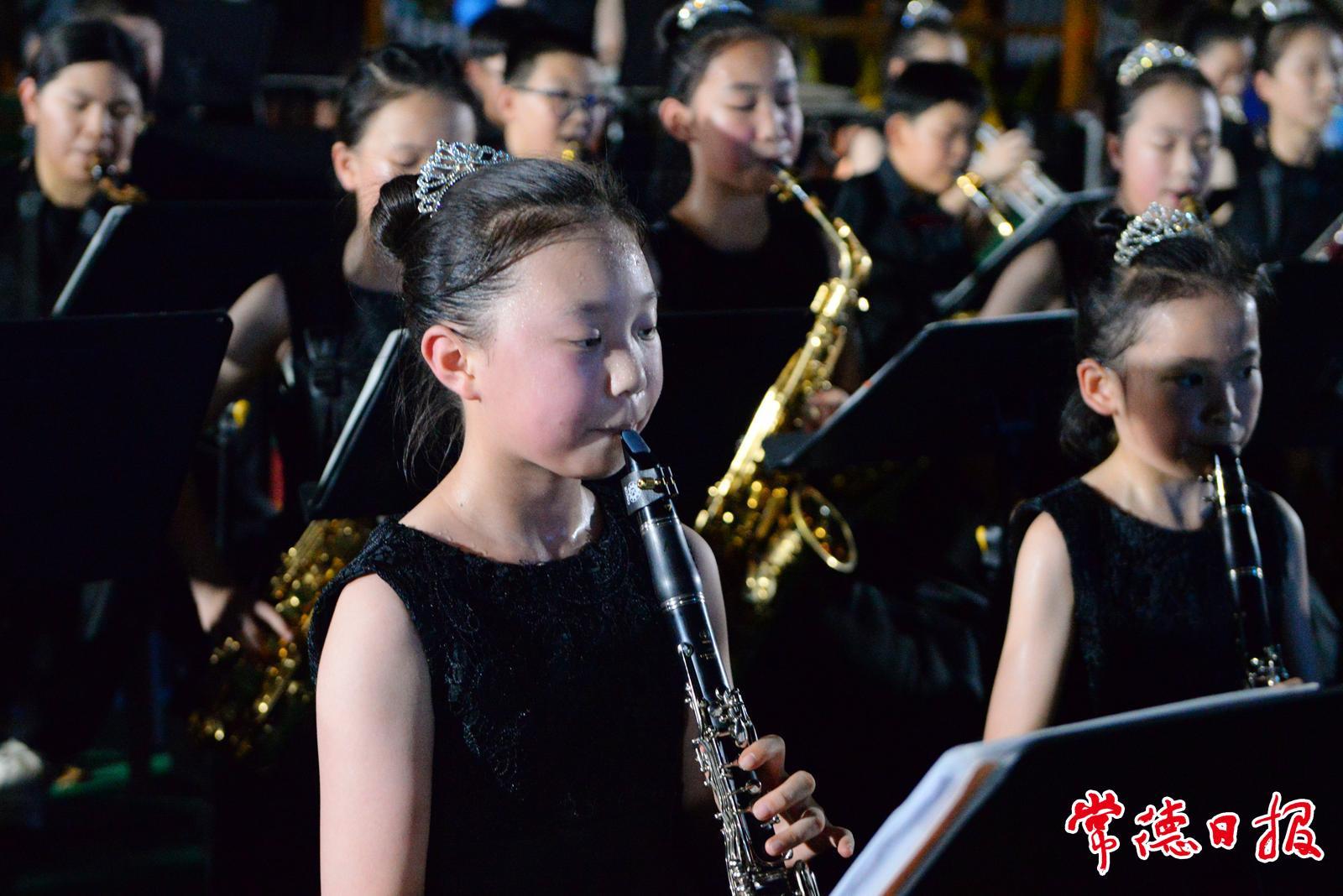 常德日報記者 徐珊珊 攝 7月5日,湖南幼專附小雅潤管樂團2025年上學期期末匯報音樂會在學校和美廣場舉行,學校管樂團一、二團的小樂手和家長參加了此次活動。音樂會以演奏+現場講解的形式進行,隊員們現場演奏了多首中外作品,老師們講解了樂團聲響訓練、管樂演奏法等方面的要求和處理方式。