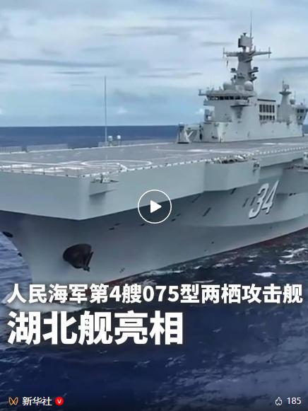 海軍湖北艦,舷號“34”,是人民海軍第4艘075型兩棲攻擊艦。中國人民解放軍建軍九十八周年,海軍湖北艦官兵為戰友送上祝福↓