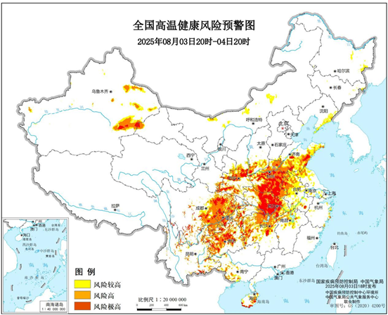 國家疾病預防控制局、中國氣象局8月3日18時聯合發布高溫健康風險預警: