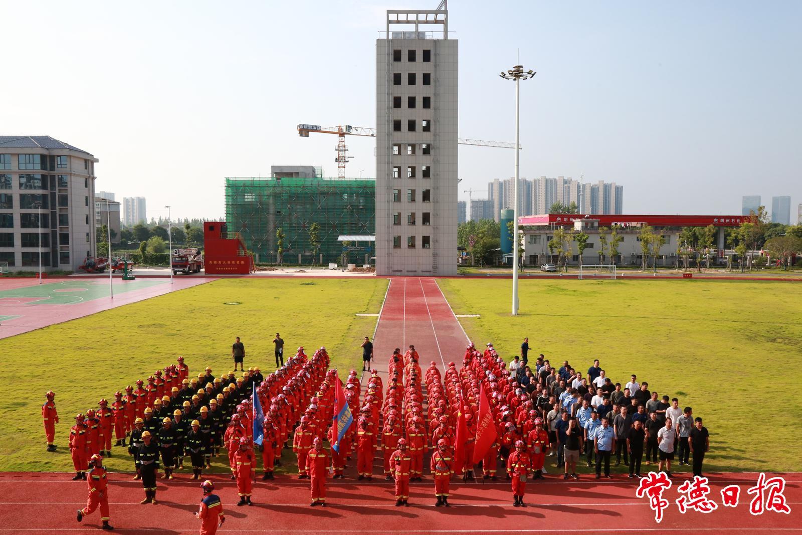 常德日報記者 彭進軍 文/圖 8月5日,常德市高火險縣(區(qū))專業(yè)森林消防隊伍實訓(xùn)演練在常德消防四站合一(朗州北路北端)舉行。來自石門縣、桃源縣等6個森林高火險縣(區(qū))森林防滅火專業(yè)隊伍、重點林區(qū)鄉(xiāng)鎮(zhèn)火情處置工作人員共計210人參加演練。