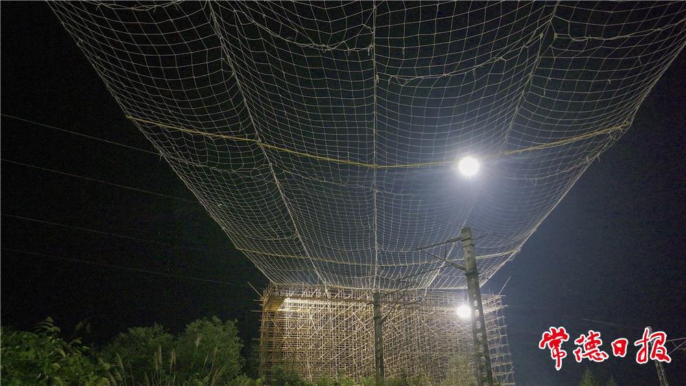 “90分鐘‘窗口期’,必須安全高效完成任務!”項目經理唐世奇的聲音穿透夜色。隨著指令下達,十余名“蜘蛛人”迅速攀上跨越架。只見,機動絞磨機的嗡鳴劃破寂靜,一張1200多平方米的巨型安全大網從鐵路北邊跨越架上緩緩地拉向南邊另一端。地面上,安全員緊盯每一個環節;高空中,作業人員隨著防護網的延伸精準操作。