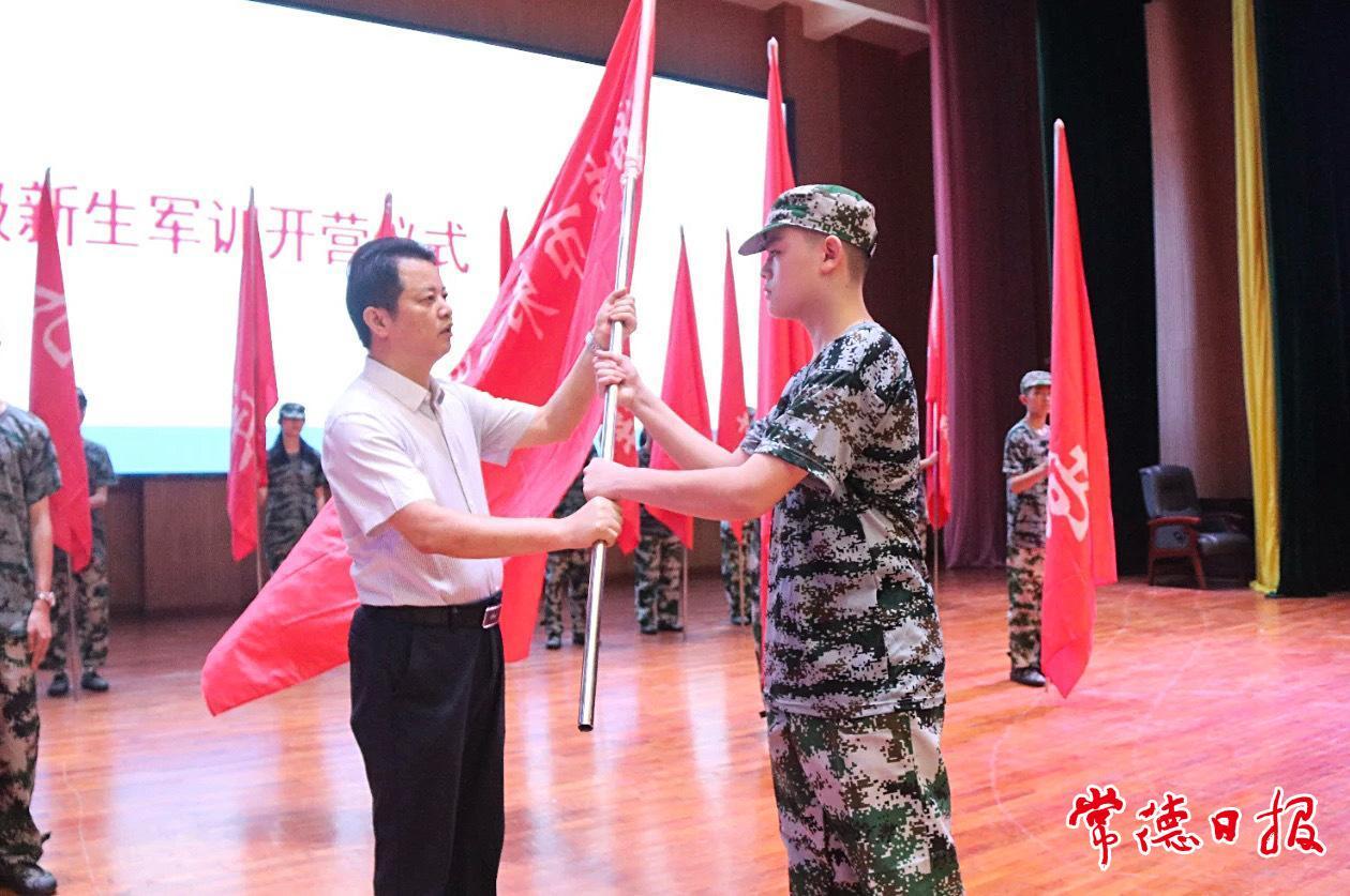 隨后,學校領導為各連隊依次授旗。據悉,此次軍訓課程分為室內課程與室外訓練,8月29日結束。其中,室內課程包含知名大學專家所作專題講座、高中學科學法導學講座、經典誦讀等,室外訓練包含隊列訓練、應急演練等。