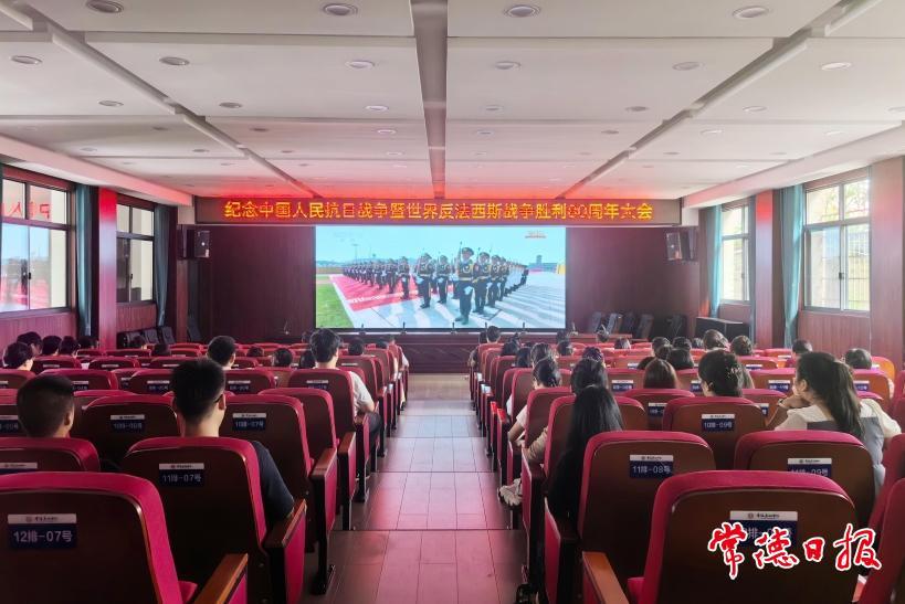 常德日報記者 楊鑫 通訊員 陳奧鈴 文/圖 9月3日上午,常德嘉樹學校組織全體師生集中觀看紀念中國人民抗日戰爭暨世界反法西斯戰爭勝利80周年大會直播盛況。
