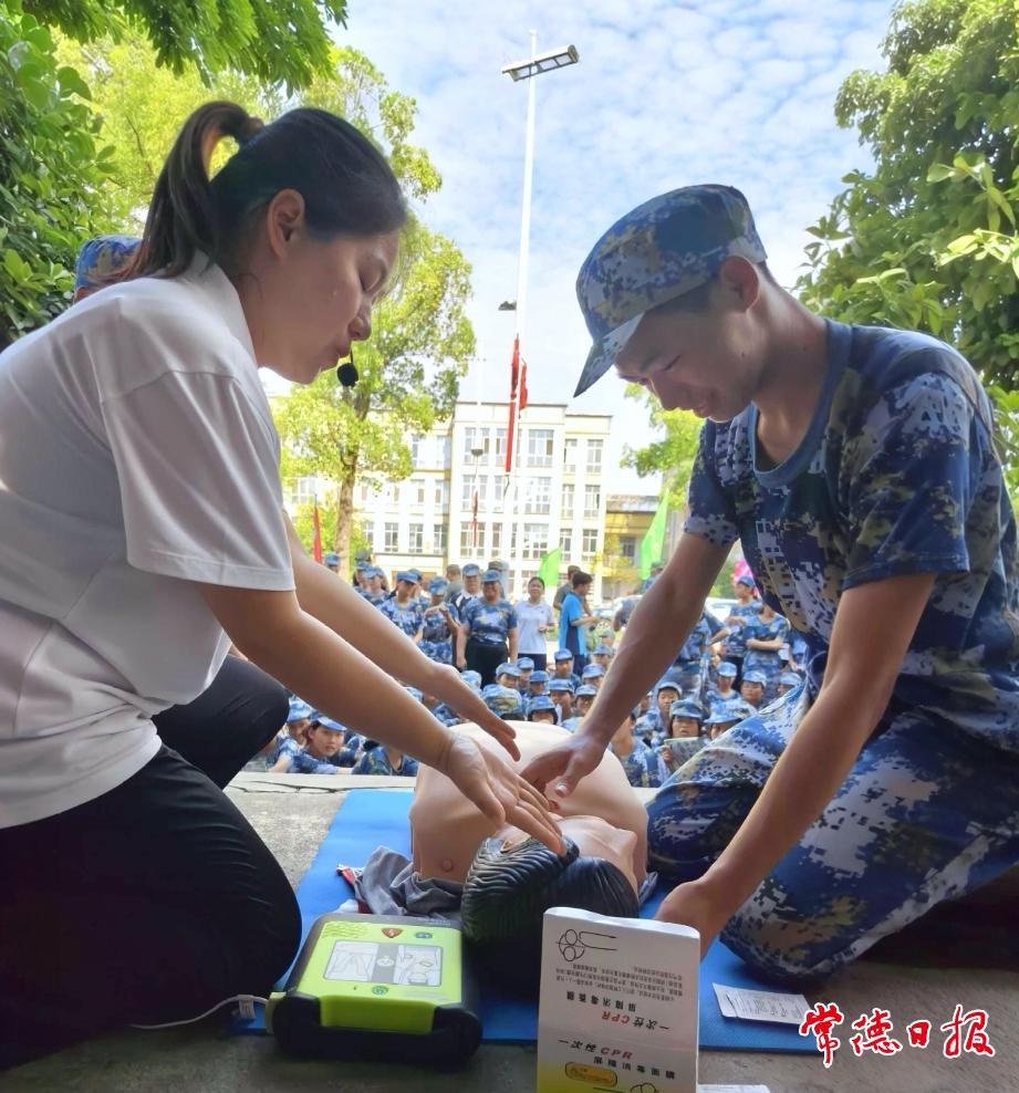 常德日報記者 王明睿 通訊員 劉瑾 文/圖 9月4日,安鄉縣紅十字會走進安鄉縣第五中學,為正在參加軍訓的高一新生開展一場以“自救互救技能培訓”為主題的應急救護培訓活動,旨在增強學生應對突發事件的能力,切實筑牢校園安全屏障。