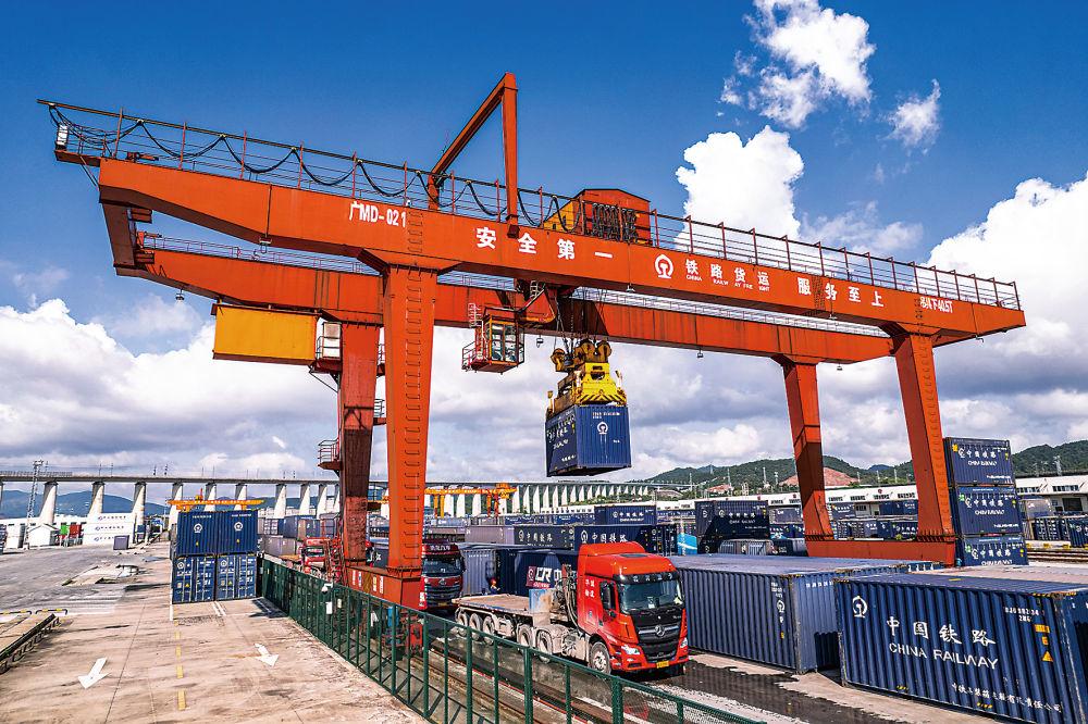 走在懷化國際陸港的貨場內,龍門吊起降不停,穩穩地抓取集裝箱,精準無誤地放置到中老班列上。運轉貨車川流不息,工人們忙碌地穿梭在各個作業區。“這里,每一個集裝箱都連通著世界。”集拼箱中心裝卸作業人員佘勇說。