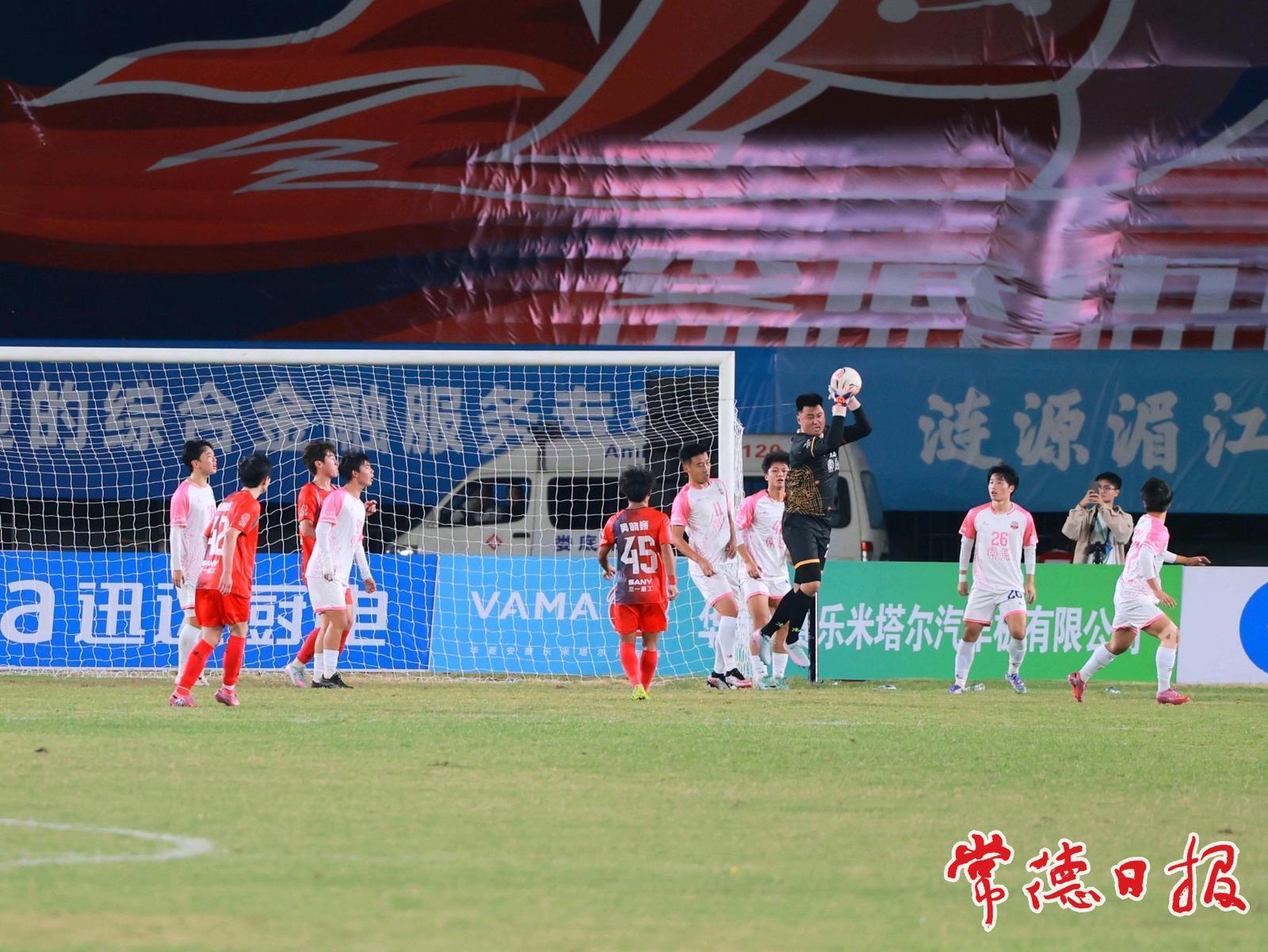 下半場,雙方都進(jìn)行了人員調(diào)整,場上形勢也變得更為開放。比賽進(jìn)行到第53分鐘,替補(bǔ)上場的常德隊(duì)10號趙文荻打門被撲出,替補(bǔ)上場的26號夏宇航補(bǔ)射建功,幫助常德隊(duì)1:0領(lǐng)先婁底隊(duì)。隨后一球落后的婁底隊(duì)展開反撲,發(fā)起一波又一波澎湃如潮的攻勢,常德隊(duì)被迫加強(qiáng)了防守,試圖抵擋住對手席卷而來的攻擊浪潮,并利用零星的反擊制造險(xiǎn)情。最終,憑借夏宇航的進(jìn)球、守門員22號王峰琦的出色發(fā)揮和全隊(duì)頑強(qiáng)的防守,常德隊(duì)把1:0的比分保持到終場,戰(zhàn)勝婁底隊(duì),取得兩連勝。