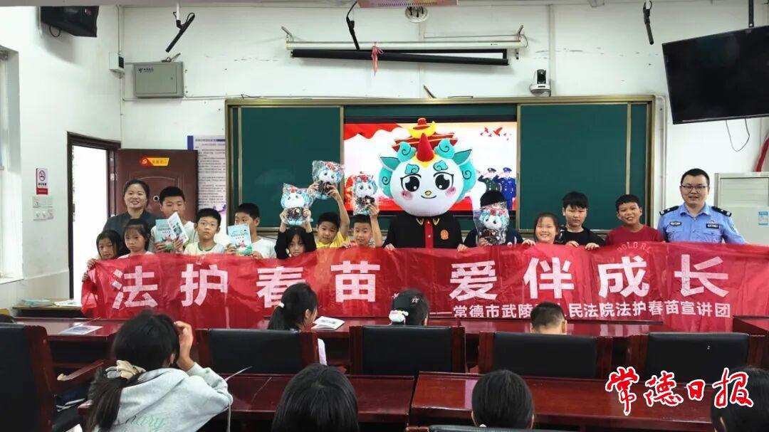 常德日報記者 李張念 通訊員 黃幸高 陸珊珊 文/圖 近日,武陵區人民法院“武好青年”普法宣講團走進武陵區河洑鎮聚寶小學,為40余名小學生帶來一場“法治+國防”雙主題普法宣講活動。