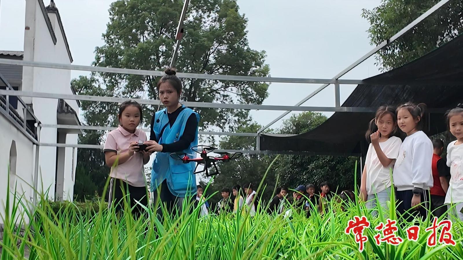 活動現場,學生們手持藏寶圖,在“尋種游戲”中仔細尋找著隱藏的“種子袋”;在參觀“洞庭湖稻作文化長廊”時,他們認真聆聽講解,積極參與趣味拓展任務。最吸引人的是“護禾游戲”環節,他們學習操控小型無人機,完成模擬噴灑農藥的任務。“我從來沒開過飛機,原來用科技種田這么酷!”2306班學生粟猷恒激動地喊道。