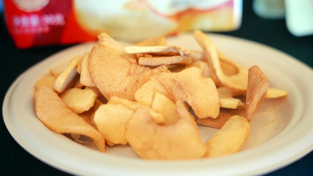在展區現場,以蘋果和梨為原料的深加工產品同樣引人注目。蘋果脆片、蘋果干、梨干、梨汁、鮮梨燉等農產品深加工制品,展現了煙臺農業產業鏈的延伸與創新。