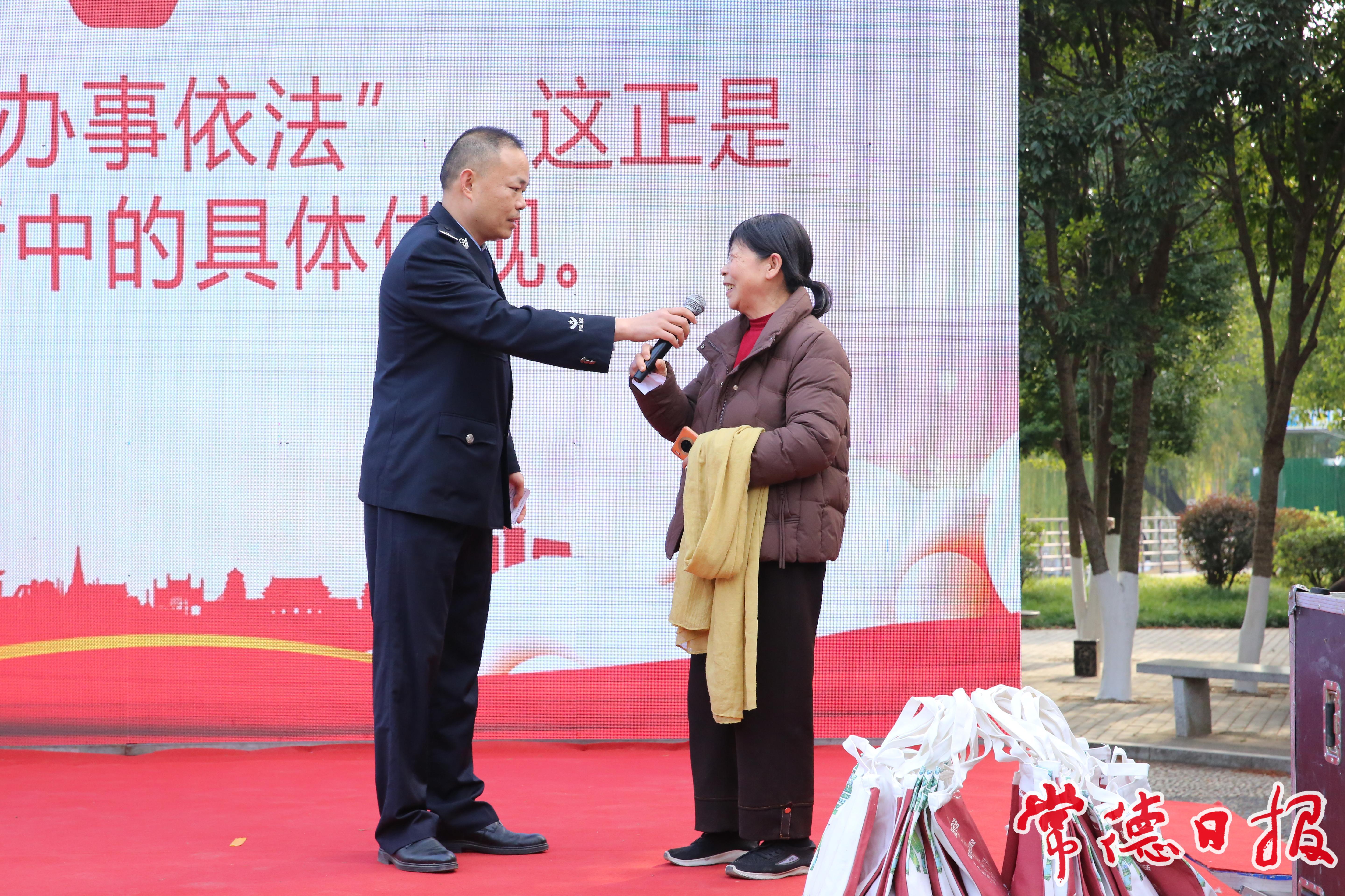 縣領導陳祖毅、梁華出席活動,縣委全面依法治縣委員會辦公室副主任、縣司法局黨組書記、局長嚴松波,縣人大監察和司法委、法制委主任委員李陽,澧陽街道辦事處黨(工)委書記龐超,19個鎮(街道)及縣人民法院、縣人民檢察院、縣公安局等13家縣直單位志愿者、廣大社區居民共同參與活動。