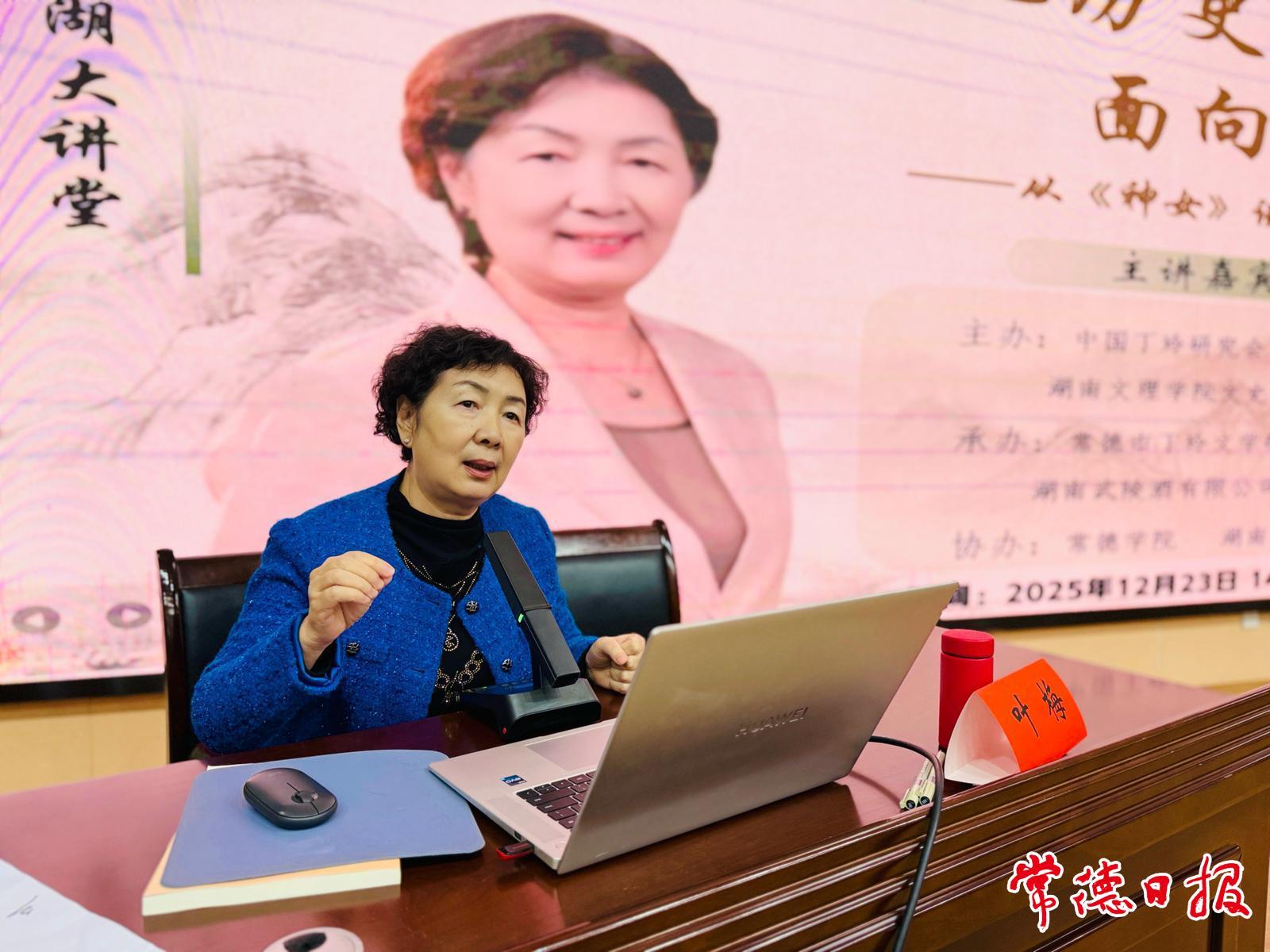 下午,葉梅《丁玲課堂》專題講座在湖南文理學(xué)院報告廳開講。葉梅以新作《神女》的創(chuàng)作為切入點,將文學(xué)巨匠丁玲的創(chuàng)作精神與常德本土元素緊密串聯(lián)。她結(jié)合自身創(chuàng)作心路歷程,分享如何在小說中融入常德的地域文化、人文風(fēng)貌,為本土文學(xué)創(chuàng)作提供了全新思路。講座現(xiàn)場,曾獲第十三屆全國少數(shù)民族文學(xué)創(chuàng)作駿馬獎的石門縣作家劉少一、曾獲全國“十大讀書人物”的兒童文學(xué)作家宋慶蓮也分享各自的創(chuàng)作心得,引發(fā)師生共鳴。互動環(huán)節(jié)中,大家積極舉手提問,現(xiàn)場交流氛圍熱烈。活動尾聲,葉梅還為到場的作家們與湖南文理學(xué)院、常德學(xué)院師生進行新書簽名,將文學(xué)交流的熱度推向高潮。