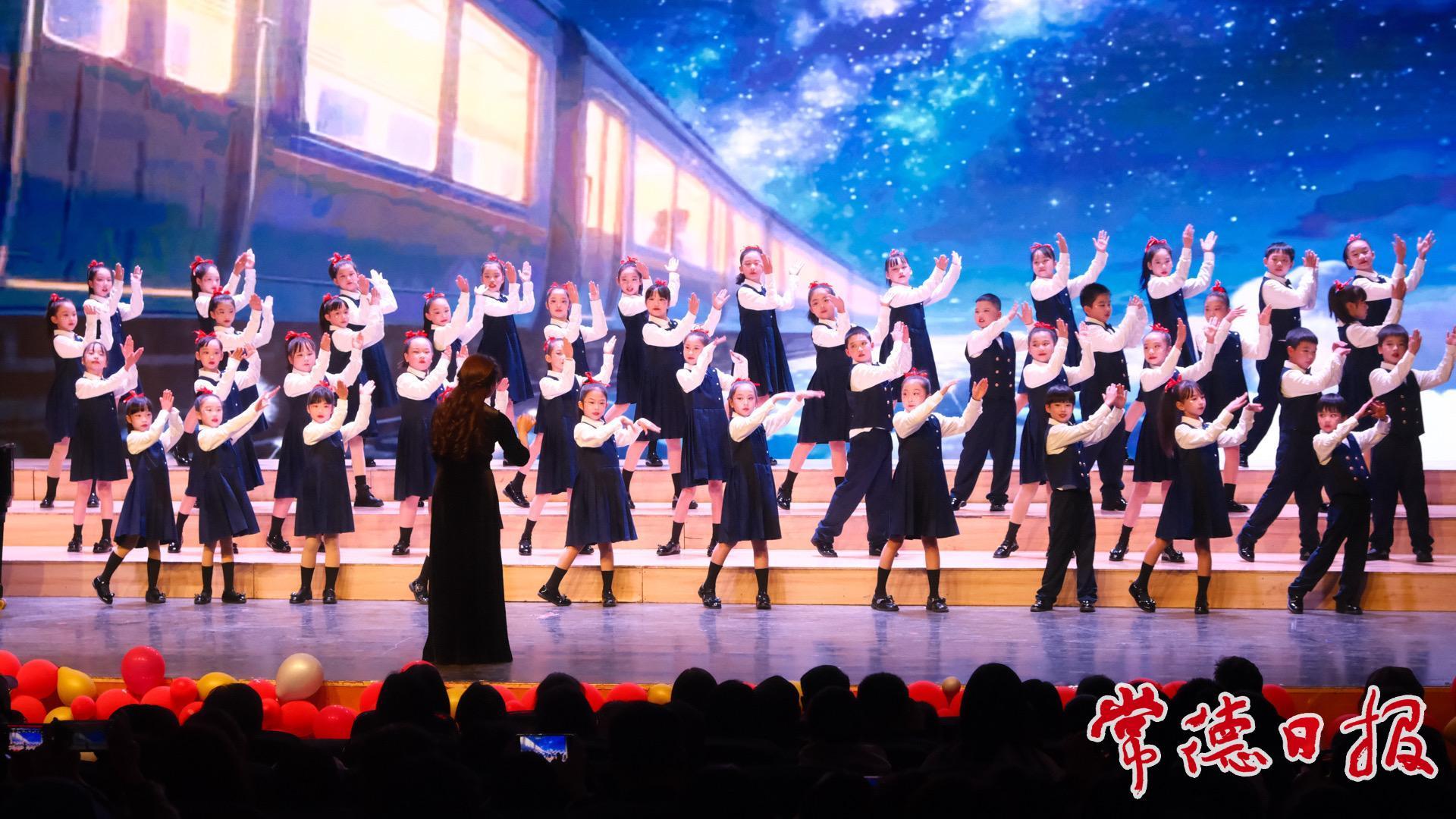 當晚的演出高潮迭起,各合唱團輪番登臺演繹經典。武陵區北恒小學恒星合唱團以《春風》的靈動與《child of peace》的靜謐拉開序幕,童真嗓音瞬間將觀眾帶入純凈的音樂世界;武陵區育英小學沅水謠合唱團帶來的《親愛的旅人》與《cold snap》風格迥異,趣味滿滿,既有溫情旋律也有活力律動;德景園育英小學景韻合唱團唱響《最好的未來》與《I let her go go》,用歌聲傳遞對成長的期許。