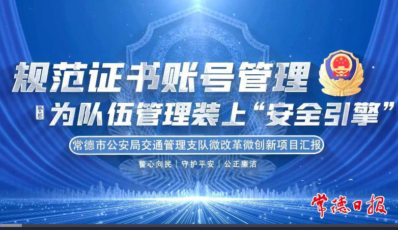 常德日報記者 王敏 通訊員 牟建平 文/圖 日前,全省公安交管系統(tǒng)微改革微創(chuàng)新成果大賽傳來喜訊,常德市公安局交管支隊選送的“數(shù)字證書賬號監(jiān)管體系”微改革項目榮獲“十佳微改革成果獎”。