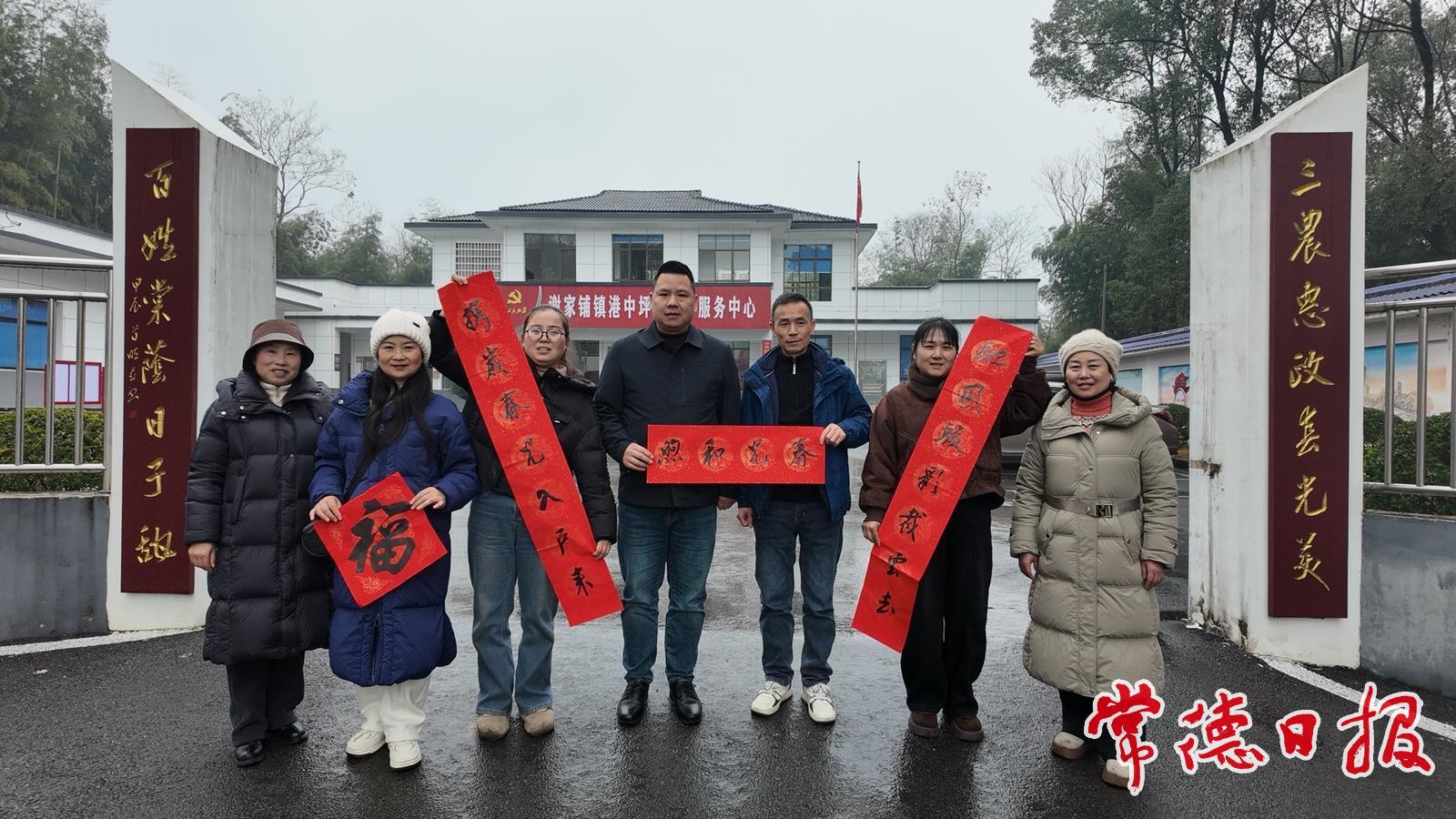 常德日報記者 黃云霞 通訊員 易嬌妃 1月30日,天氣濕冷,卻未能阻擋常德市楹聯家協會工作人員創作楹聯、送福下鄉的腳步。他們來到鼎城區謝家鋪鎮港中坪村,為村部、種糧大戶、鄉村解說員、返鄉創業人群等送上楹聯、福字和新春祝福,得到了村民們的交口稱贊。