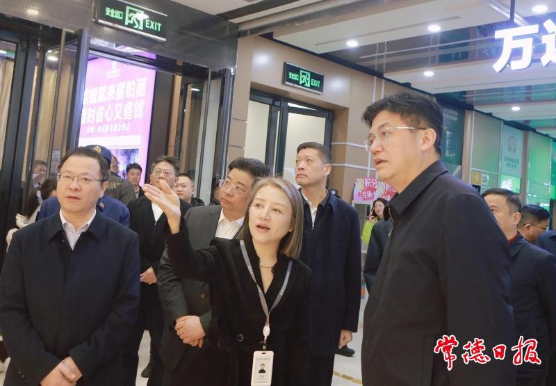 春節臨近,常德萬達廣場人來人往,年味十足。羅毅君、周振宇一行督導檢查商業綜合體安全防范、商場市場節日保供工作,要求始終把安全放在首位,嚴格落實安全生產主體責任,加強隱患排查整治,營造安全、放心、有序的消費環境。要多措并舉做好保供穩價工作,加強市場監管,嚴把食品安全質量關,讓廣大人民群眾買得放心、吃得安心。