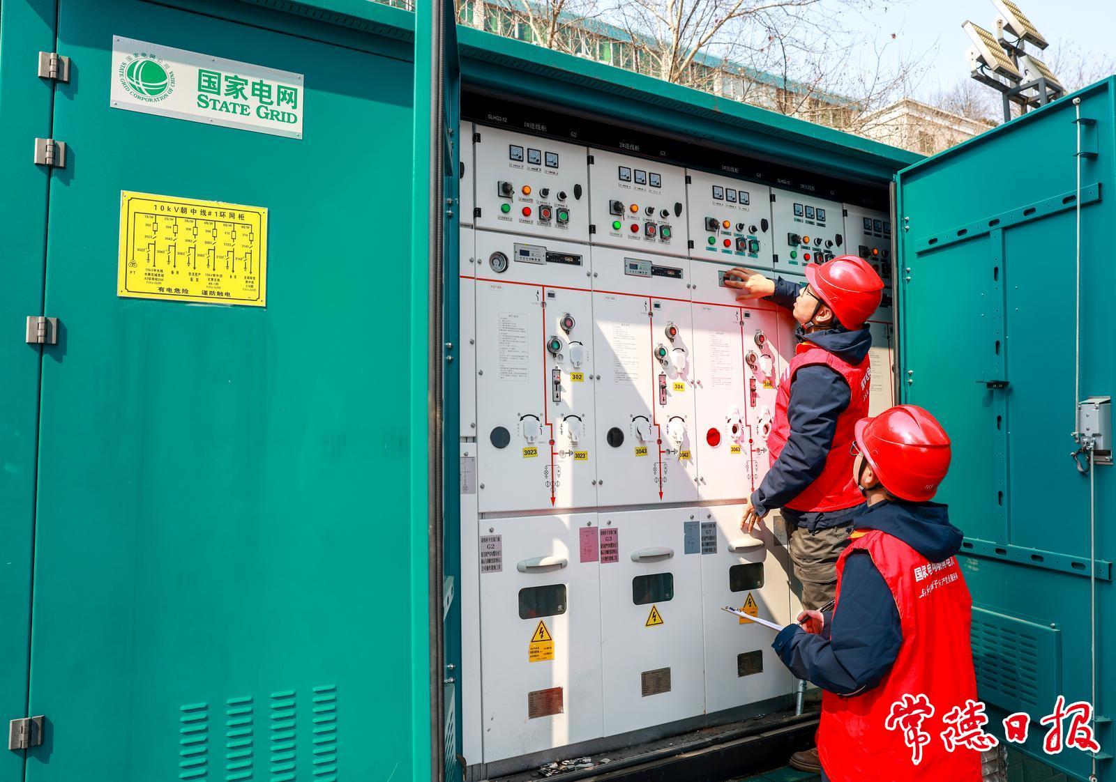 兩人徑直走到廣場門口的配電設施前。蹲下、開柜、探身,王永辰一項項仔細核對,嘴里低聲念叨著:“環網柜運行正常,無凝露放電,通信信號正常。”吳湘君蹲在一旁,攥著本子,他念一句,他記一筆,兩人配合默契。