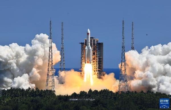 ????2022年7月24日,搭載問天實(shí)驗(yàn)艙的長(zhǎng)征五號(hào)B遙三運(yùn)載火箭,在我國(guó)文昌航天發(fā)射場(chǎng)點(diǎn)火發(fā)射。新華社記者 李剛 攝