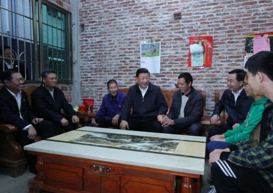 ????2018年10月22日至25日,中共中央總書記、國家主席、中央軍委主席習近平在廣東考察。這是10月23日下午,習近平在英德市連江口鎮連樟村貧困戶陸奕和家,同他們親切地拉家常。新華社記者 鞠鵬 攝