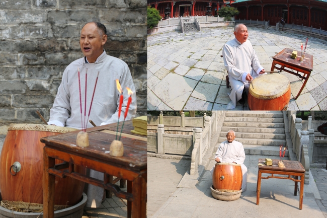 澧縣等湘西北地區的傳統鼓盆歌表演,采用一面約半人高且斜扣于木盆中的大鼓伴奏,后改直徑一尺的普通大鼓。鼓盆歌是荊楚巫儺、祭祀文化的典型代表,藝術內涵豐富,表現為唱詞文學性極強,傳統的演出方式多在靈堂內進行,兼具悼亡祭靈的功用,且加入銅鑼、銅鈸伴奏。常用韻11個半,演出程序為:先擊三通鼓、揚號開唱、請神、安五方、勸亡、說唱正書、勸亡奠酒、送歌郎、說贊語、出魂。舞臺上的純藝術表演則直接唱敘節目內容。唱詞押韻,多一韻到底,后來有所變動;句式結構在清朝前期為五字句,清嘉慶年間,落第秀才蘇金福改為七字句;上世紀七十年代在澧縣文化館的主導下,引入多字句式,把口傳變為文本傳,演唱改說唱,坐唱改站唱;演唱語言以“澧州官話”為主,注重地域性和即時性,唱腔質樸,板式豐富、清晰。
