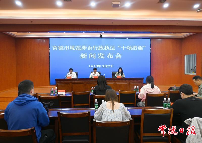 常德日報記者 粟鈺 見習記者 楊宛霖 通訊員 彭暉 楊雄源 文/圖 3月27日,常德市司法局、市優化營商環境辦公室召開新聞發布會,公開發布《常德市規范涉企行政執法“十項措施”》(以下簡稱“十項措施”)。