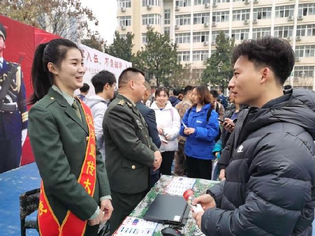 12月10日,武陵區人武部聯合湖南文理學院開展2022年春季征兵宣傳進校園活動,持續激發大學生參軍入伍、報效祖國的熱情。記者 蔡文龍 攝