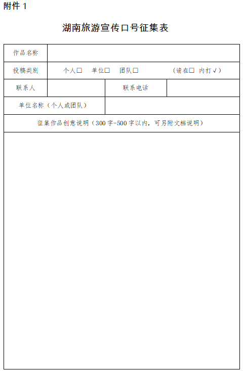 附件:1.湖南旅游宣傳口號征集表