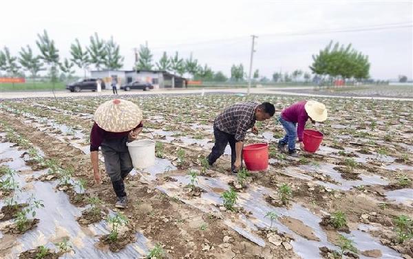 ????4月24日,漢壽縣辰陽街道紐口河社區(qū)蔬菜化肥減量增效示范片,村民正采用經(jīng)過配比適合當(dāng)?shù)赝寥赖挠袡C肥為蔬菜進行施肥。據(jù)介紹,示范片區(qū)采用測土配方施肥、有機肥替代化肥、水肥一體化等方式,每畝地肥料使用量平均減少了80多斤。本報記者 李龍 攝
