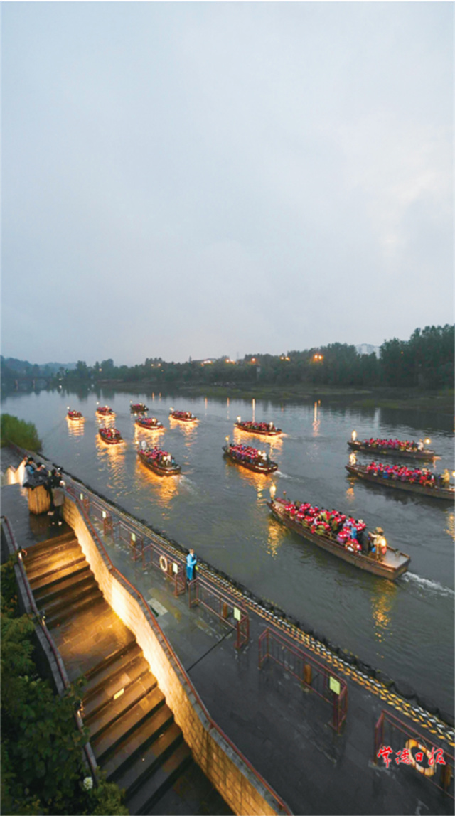 ????夜幕四合,點點漁火劃破靜寂的秦溪,大型溪流實景演出《桃花源記》浪漫上演,沉醉其中,恍若穿越千年。