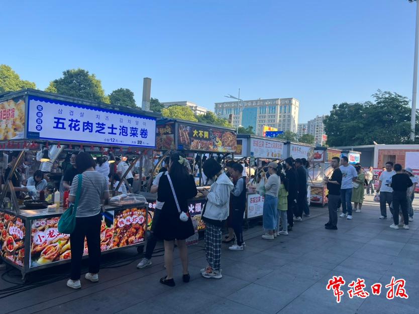 從長沙來常德旅游的李澤利一家在萬達廣場附近一家酒店住宿,這幾天,星光夜市成為一家人頻頻打卡的地方。“孩子就喜歡吃這些小吃,我看這里人來人往的,衛生狀況也蠻好,還比較放心,就滿足下她的小心愿。”