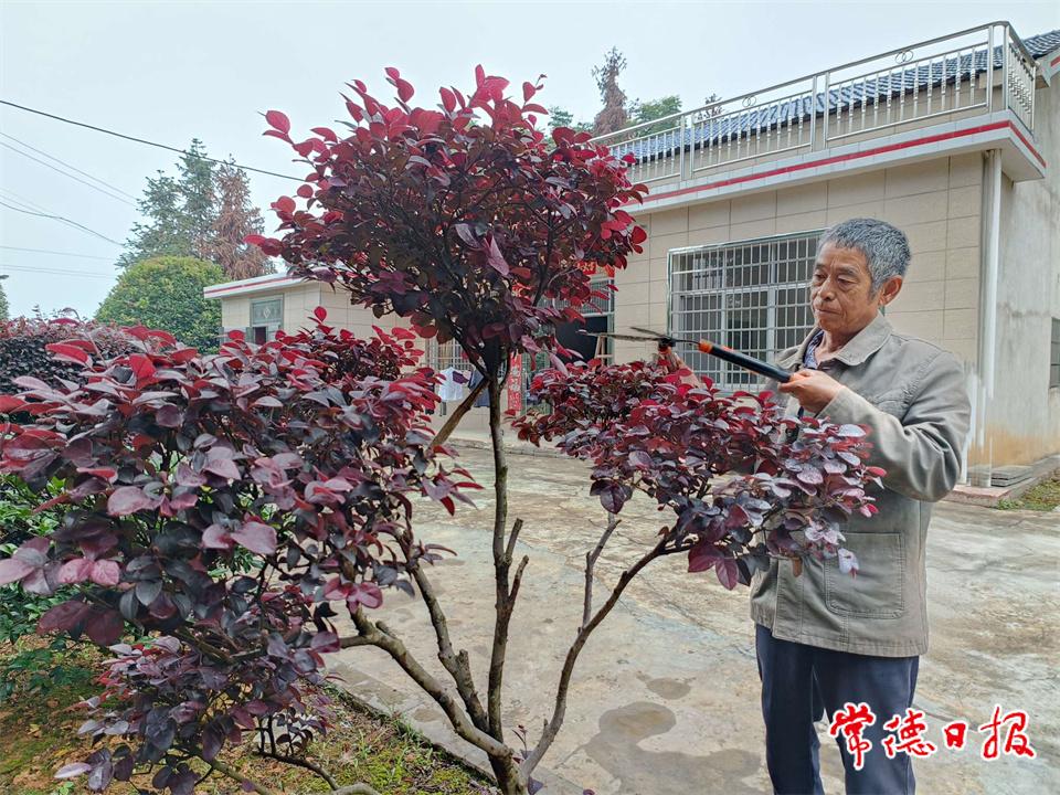 “這個紅檵木是圓柱形,那個羅漢松是孔雀形,紅葉石楠是圓球形,這些形狀都是根據市場的需求修剪的,哪種形狀值錢,我就慢慢琢磨,三年五年就成形了。有形狀的花木市場價格要高很多呢!”張開忠一邊修剪,一邊談他種植花木的體會。