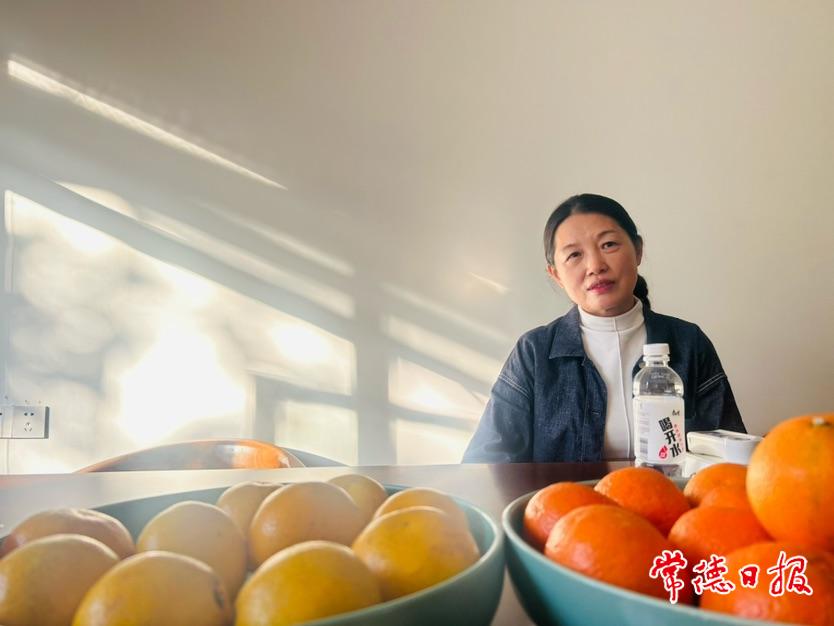 在臨澧縣果然好柑橘專業合作社的小會議室里,我們相對而坐,陽光透過窗外的橘樹照進來,投影在她背后墻面上,風吹樹葉,斑駁的樹影竟流動了起來。