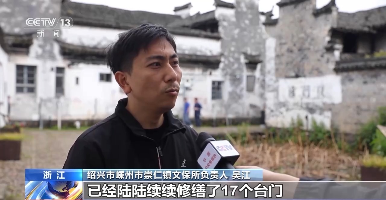 浙江省紹興市嵊州市崇仁鎮文保所負責人 吳江:從2015年開始一期二期三期,現在到了第四期修繕工程,已經陸陸續續修繕了17個臺門。我們古鎮里面傳統風貌就是明清時候的,想整個古鎮風貌能夠保存下來。