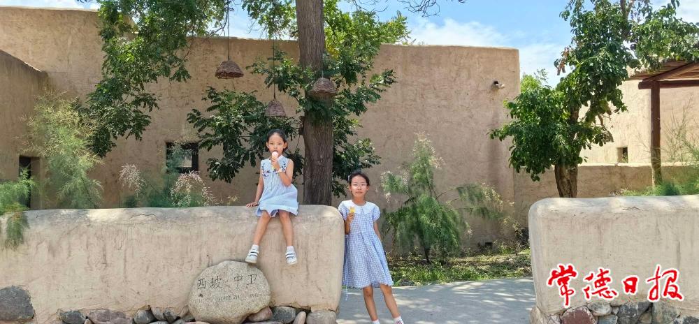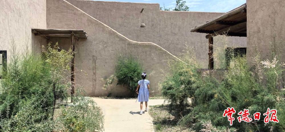 去酒店的路上,半空中飄蕩著白色的絮狀物,孩子們問那是什么。瑤瑤說,是胡楊樹的種子。遠(yuǎn)處,山巒上隱隱現(xiàn)出一段長(zhǎng)城的殘留。近處,是一條通向黃河的水泥小路,河對(duì)岸就是沙坡頭景區(qū)。接駁車往右拐了個(gè)彎,便正式進(jìn)入住宿區(qū)了。一眼望去,就是傳說中的西北“土坯平頂房”建筑群。砂礫色的背景,疏朗有致的綠樹,頗有異域風(fēng)情又不乏安全感。畢竟,這是在咱大中國(guó)。