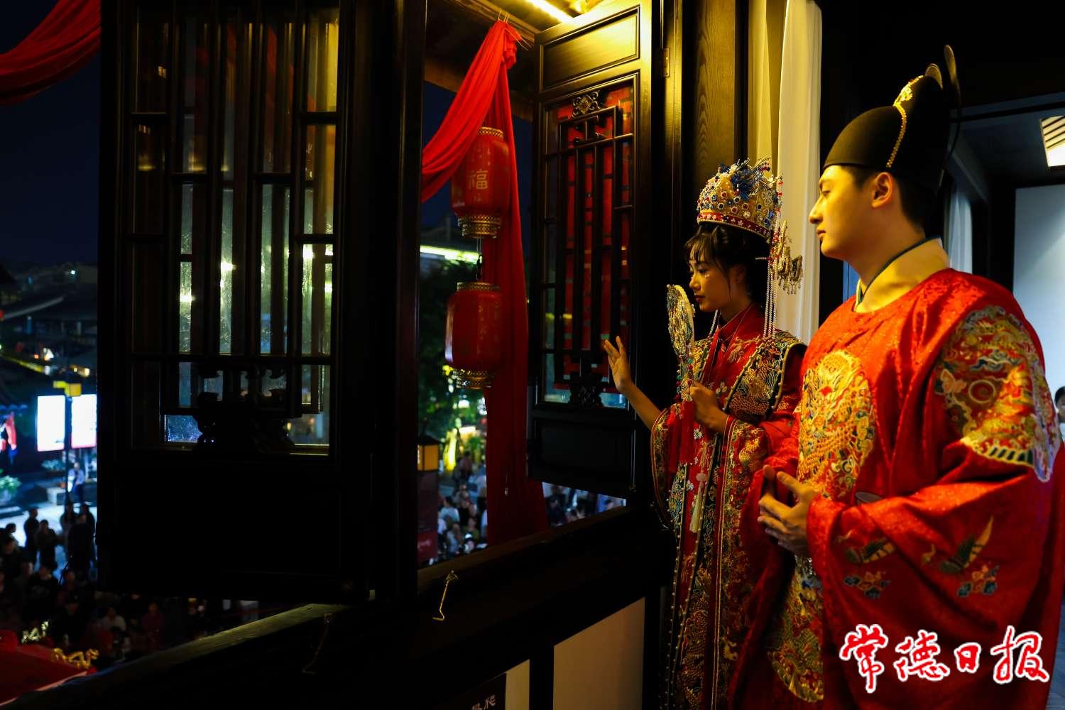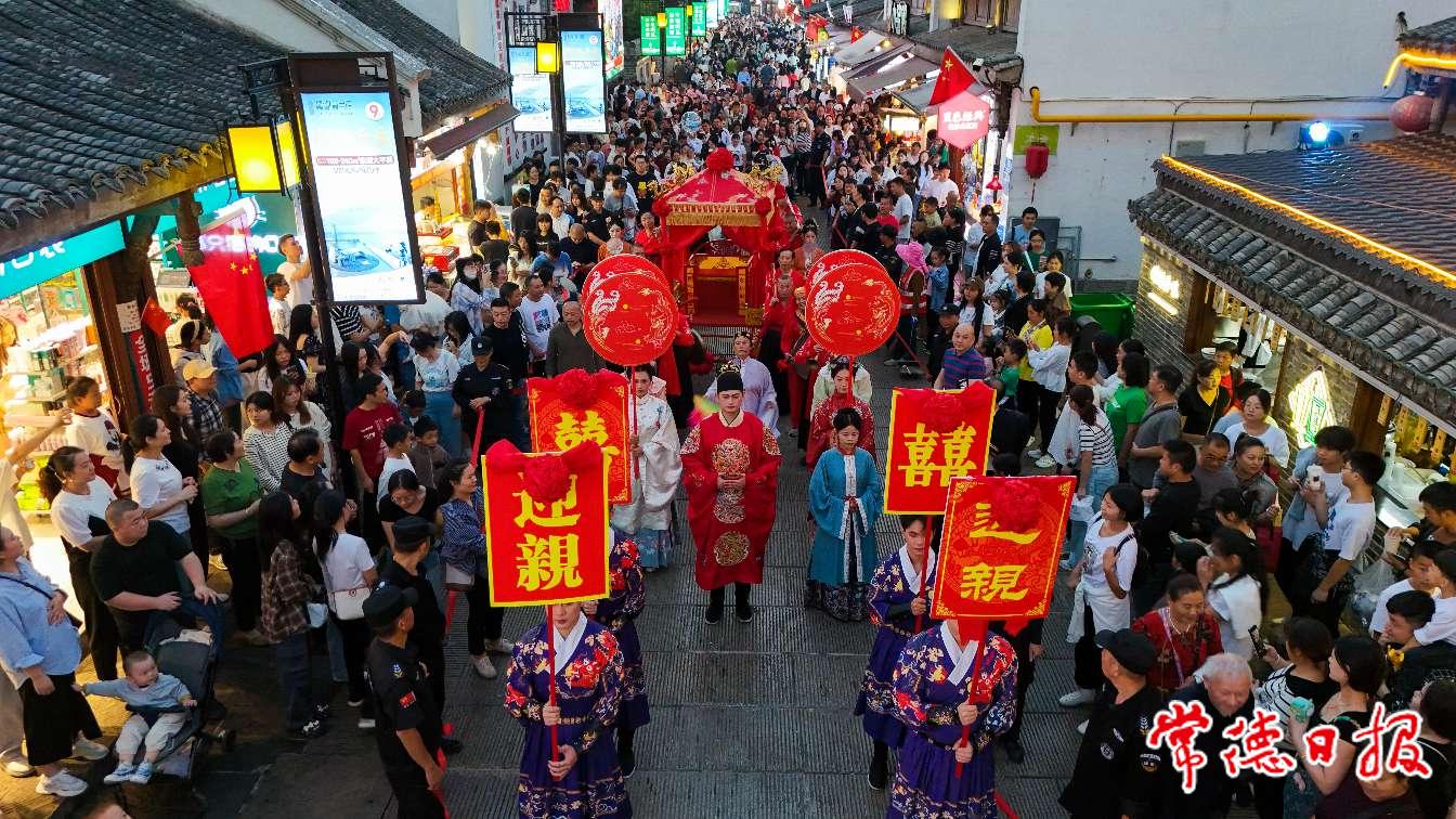 國慶假期,常德河街活動精彩紛呈。非遺展演、明制婚禮、民族風情秀、百團大賽等十多項文化活動輪番上演,市民以及游客沉醉其間,共享“文旅大餐”。據悉,常德河街單日游客最高峰達20萬人次,外地游客占比高達67%,其中,以湖北、廣東、江西等地游客居多。常德日報記者 蔡文龍 攝