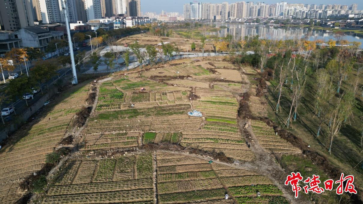 12月13日上午,又有市民向記者反映,近幾日雖有街道和社區的工作人員現場宣傳,但并未看到有居民主動清理自己的“菜園”。隨后,記者在現場看到,“菜園”里多處貼有“此處嚴禁種菜,請于三天內自行處理”的告示,落款為武陵區永安街道辦事處,但所種蔬菜仍未清理。記者經過再次與市自然資源和規劃局、市經投集團、武陵區區長熱線溝通,“菜園”的處理單位得到落實。12月16日,市經投集團調用設備,將風光帶儲備地塊上的“菜園”全部清除。