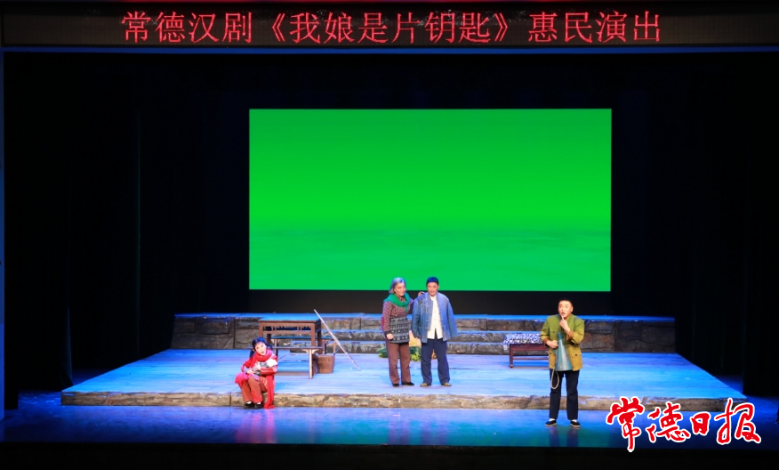 常德日?qǐng)?bào)記者 李紫瑩 馮順前 通訊員 劉禮德 文/圖 1月7日晚,常德漢劇《我娘是片鑰匙》惠民演出在常德市文化館劇場(chǎng)精彩上演。