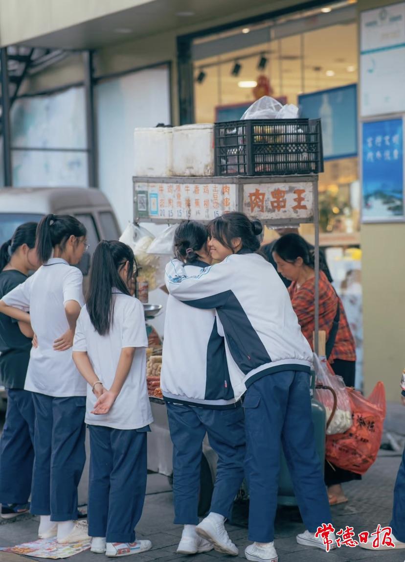 打開李軻的社交軟件,能看到他記錄的常德街巷四季。春日,高山街兩旁粉白交織的櫻花肆意綻放,身著漢服的少女在此定格青春;夏日傍晚,暑氣逐漸消退,一對父女在巷弄里奔跑嬉戲;龍港路上,蹬著三輪車一路吆喝叫賣的小販,在金黃色的道路盡頭漸行漸遠;冬日,夕陽西下,一對老夫妻牽著手走在回家的路上……