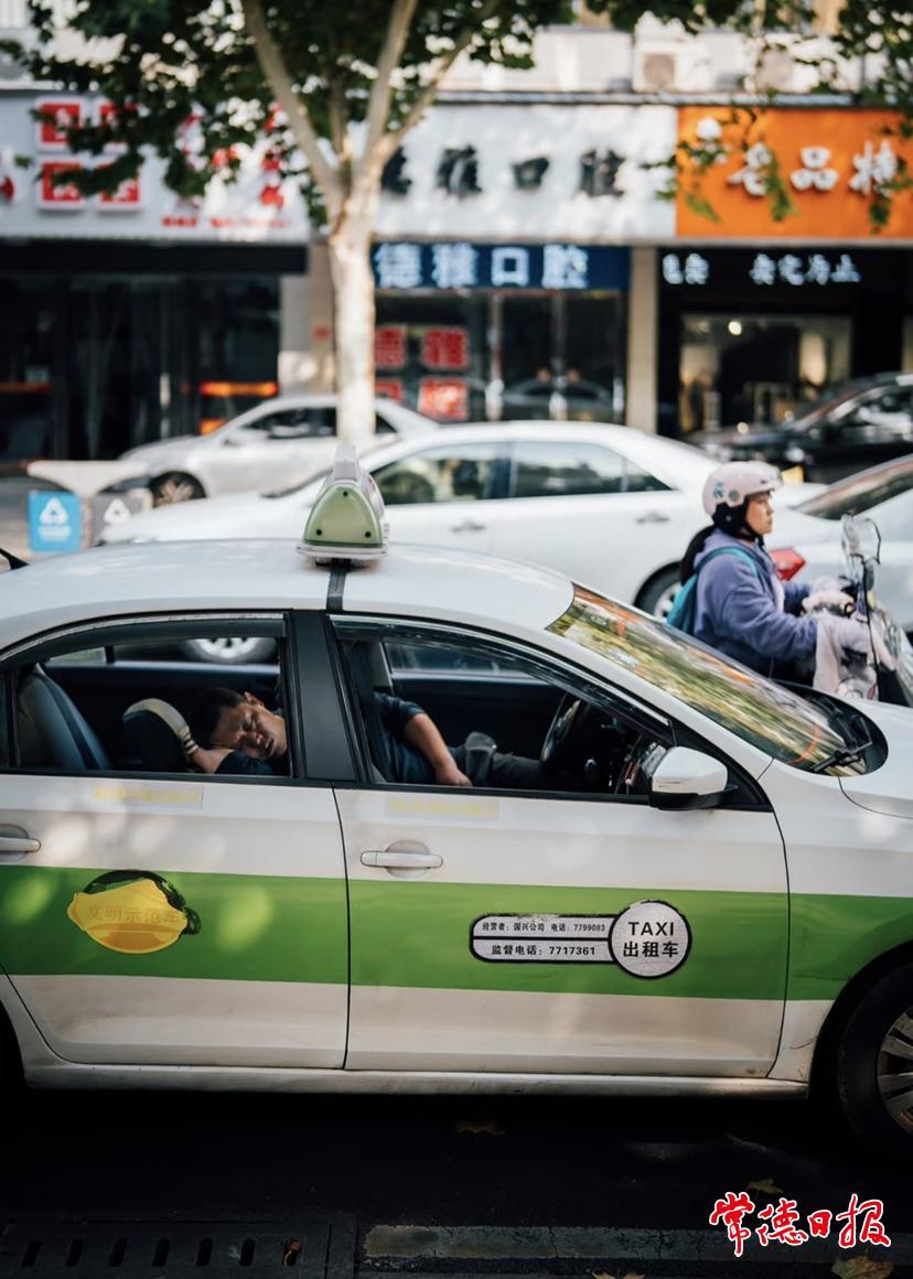 在黃家巷狹窄的巷道里,李軻停下腳步,“咔嚓”“咔嚓”的快門聲響起,鏡頭捕捉到人們時常見到卻往往忽略的瞬間:炸串攤前,油鍋翻滾,熱氣四溢,一對母子正等待攤主翻動木簽;老式剃頭攤前,攤主熟練地為顧客修剪頭發,顧客則閉目養神,一臉享受;不遠處,幾位老人圍坐在一起下象棋,他們專注地盯著棋盤,周圍的觀棋者偶爾交頭接耳;打開的車窗里,的士司機靠在座椅上睡著了,臉上的疲憊在片刻休憩中漸漸消散……