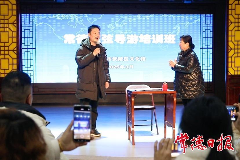 常德日報記者 裴維維 通訊員 汪洋 文/圖 3月5日,常德絲弦導游培訓班在武陵區文化館正式開班。來自我市部分旅行社專職導游、一線文旅從業人員、旅游教學人員以及市導游員協會會員等相關行業從業人員共22人齊聚一堂,在常德絲弦國家級非遺代表性傳承人諶曉輝的指導下,學習常德絲弦理論知識及基本唱法,提升業務技能,助力其在激烈的旅游市場競爭中脫穎而出,講好常德故事,樹好常德形象,為常德文旅產業高質量發展注入新動能。
